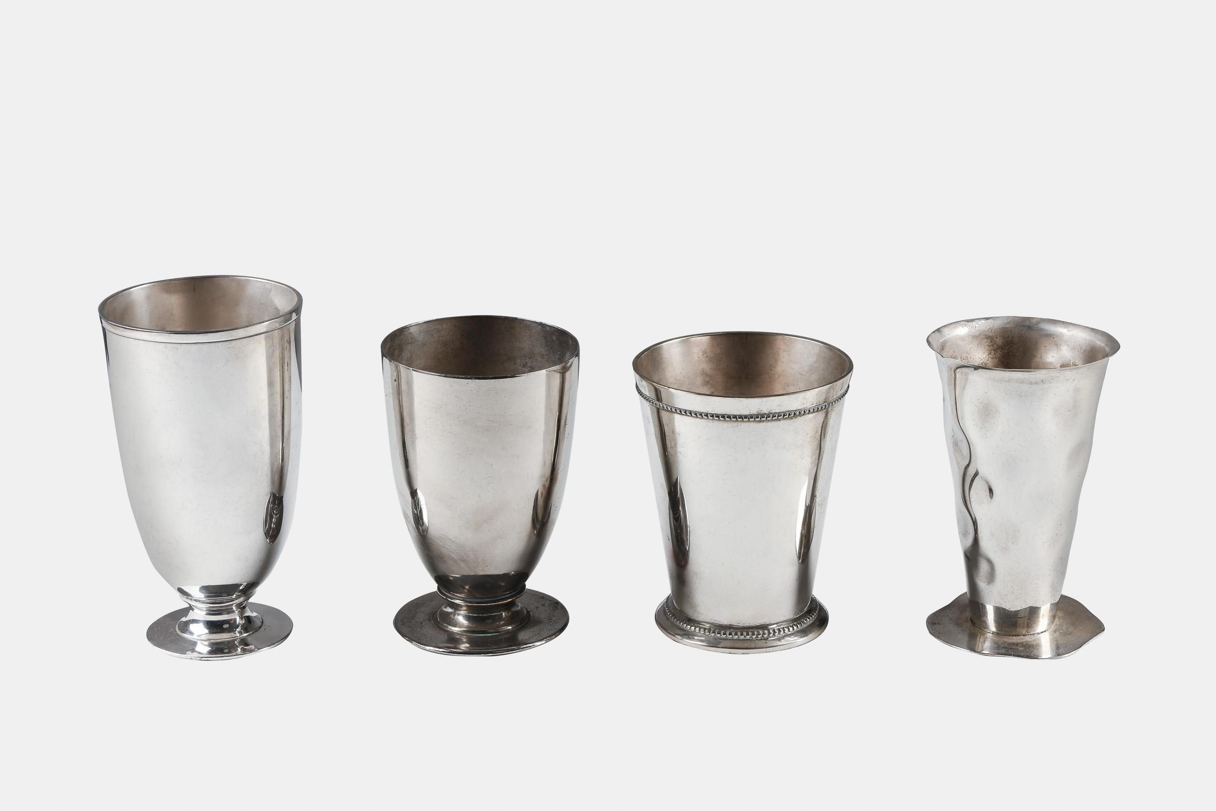 Description: Aged silver plated vintage containers in various designs & sizes.