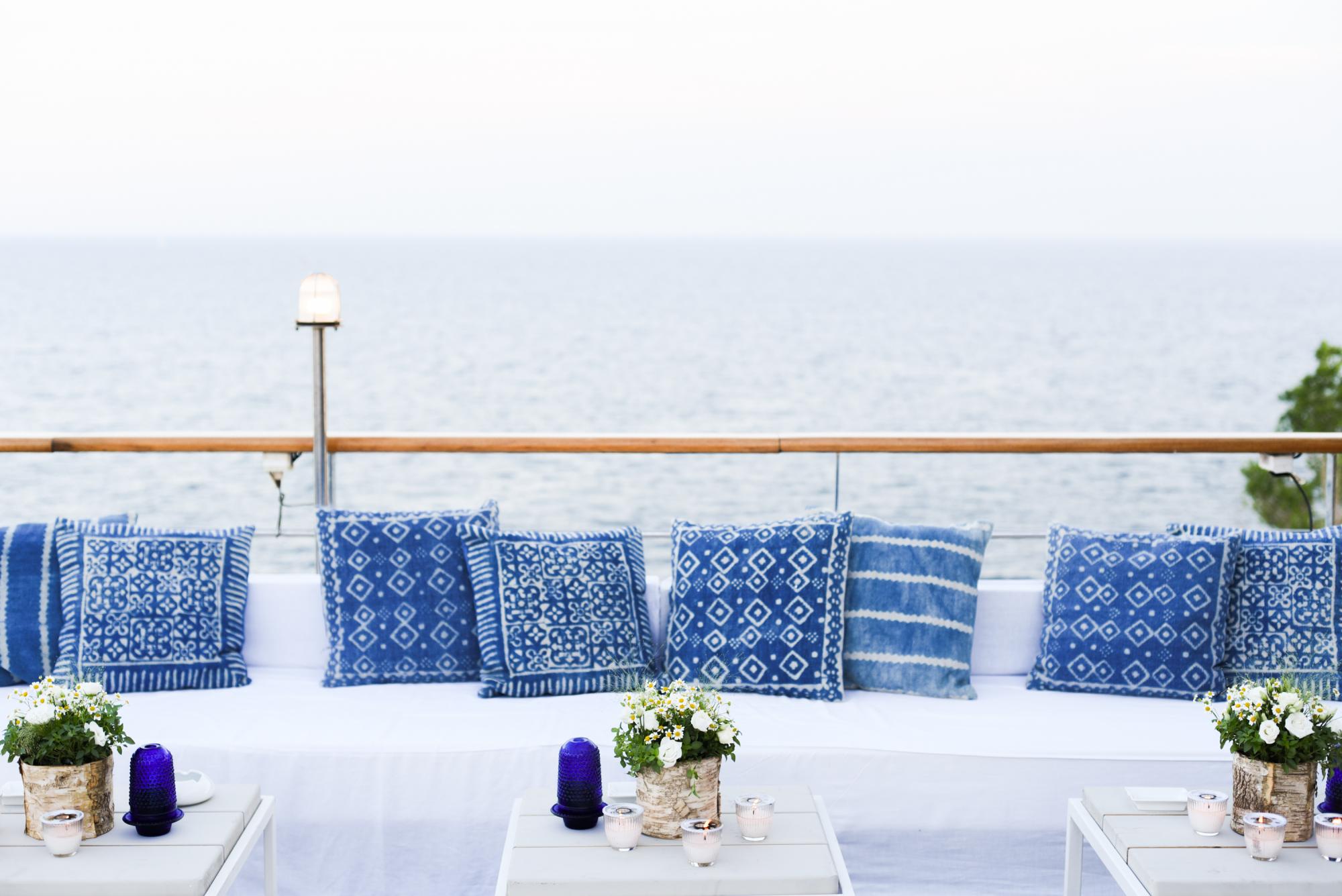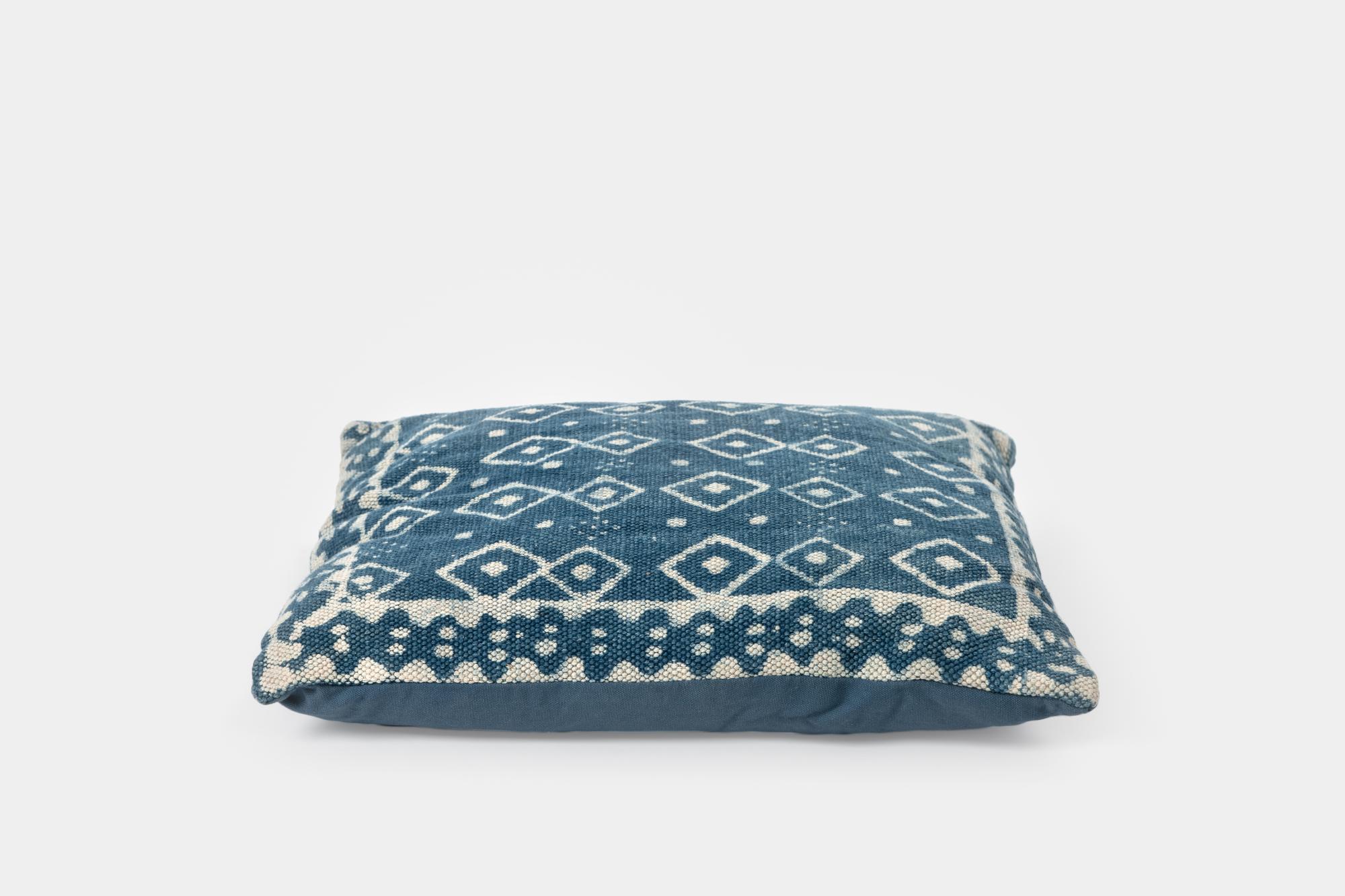 Description: Cotton & linen pillows in blue & white patterns