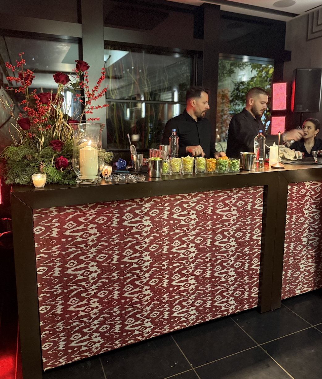 Brown wooden surface & customizable facade (fabric of your choice, printed fabric, mirror, natural materials such as wood & bamboo and so much more).