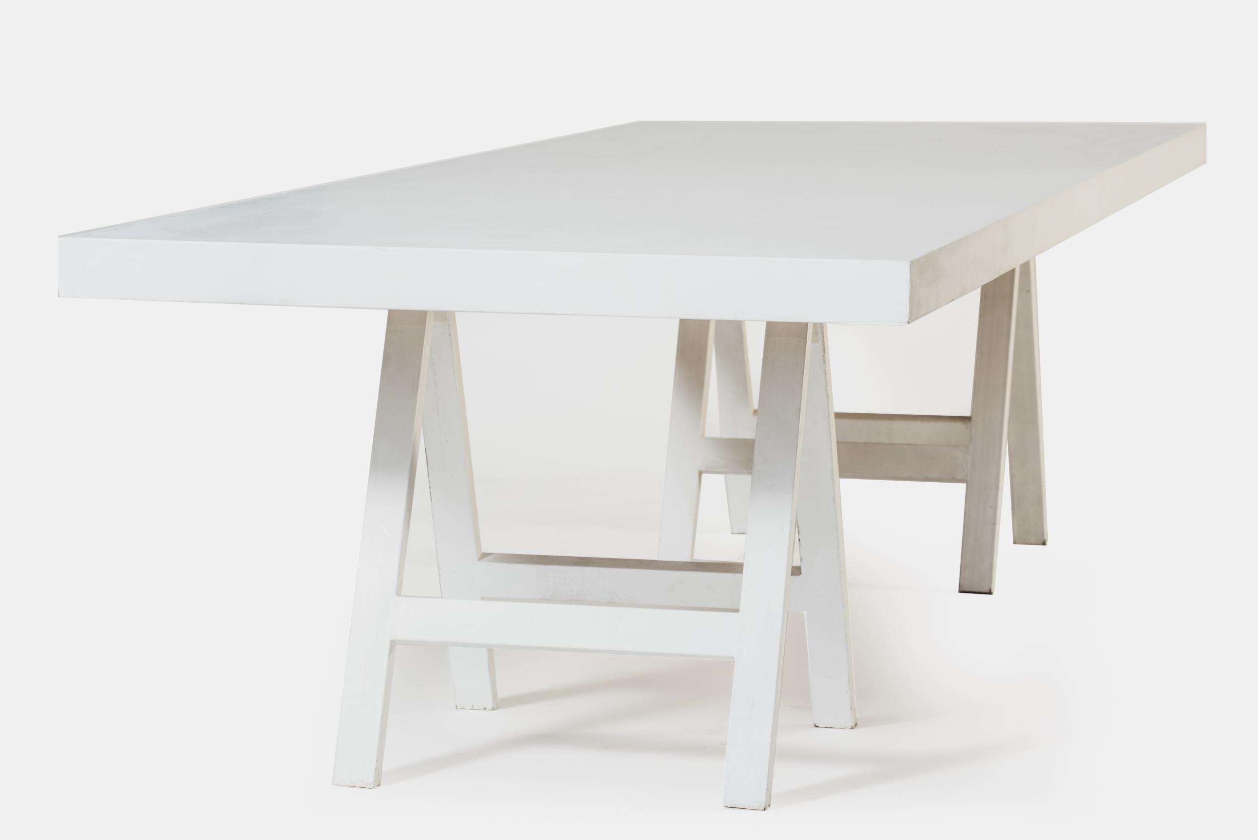 Description: White metal legs, wooden surface