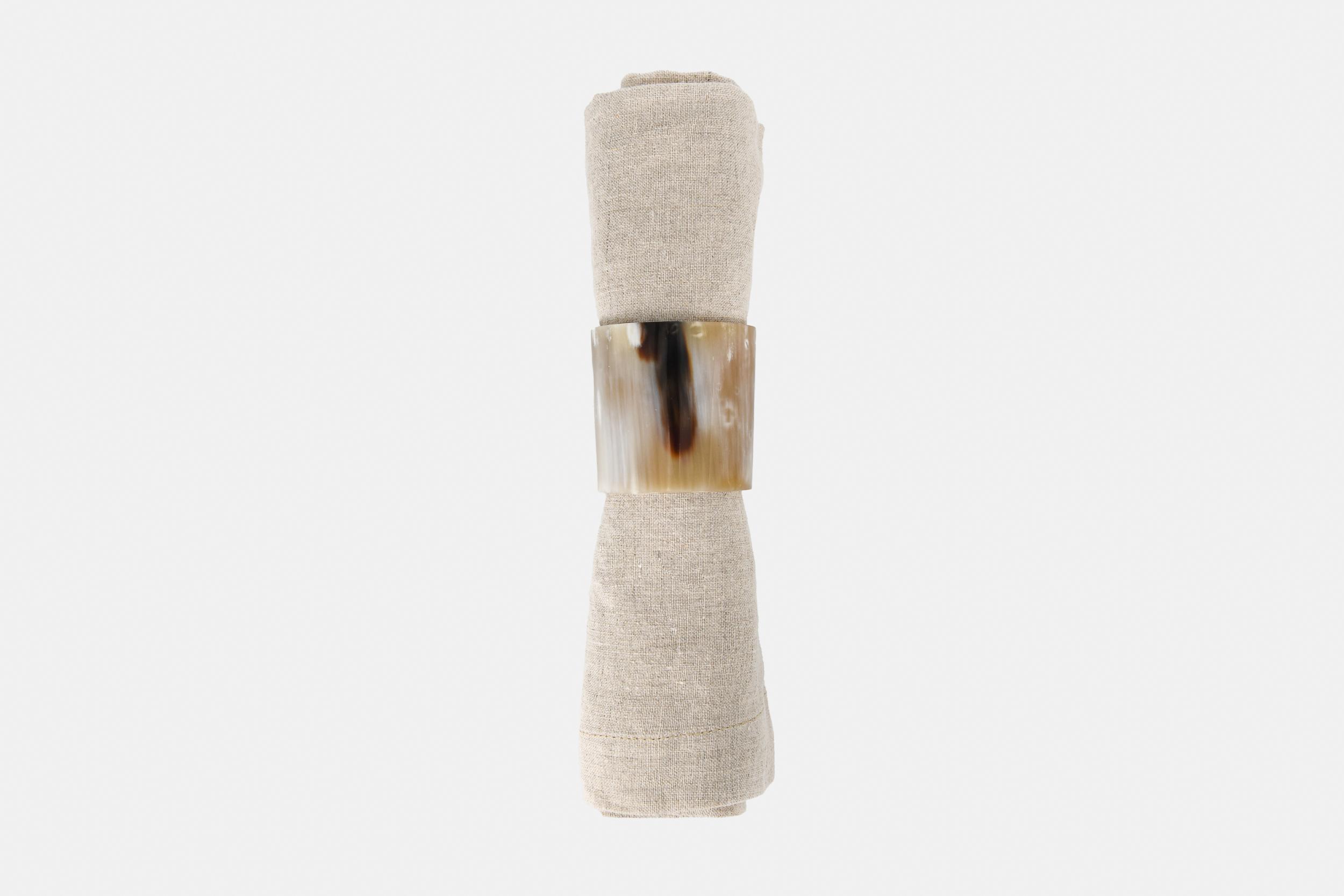 Description: Horn napkin rings in natural white & brown shades. As this is a natural material, each piece is unique!