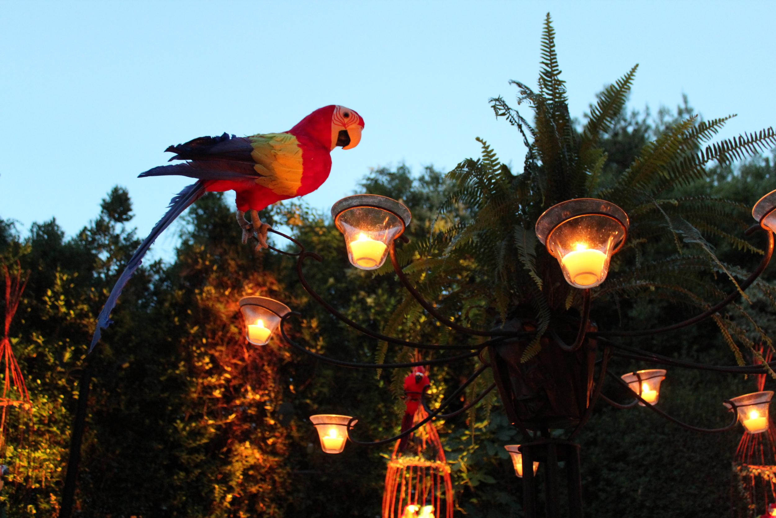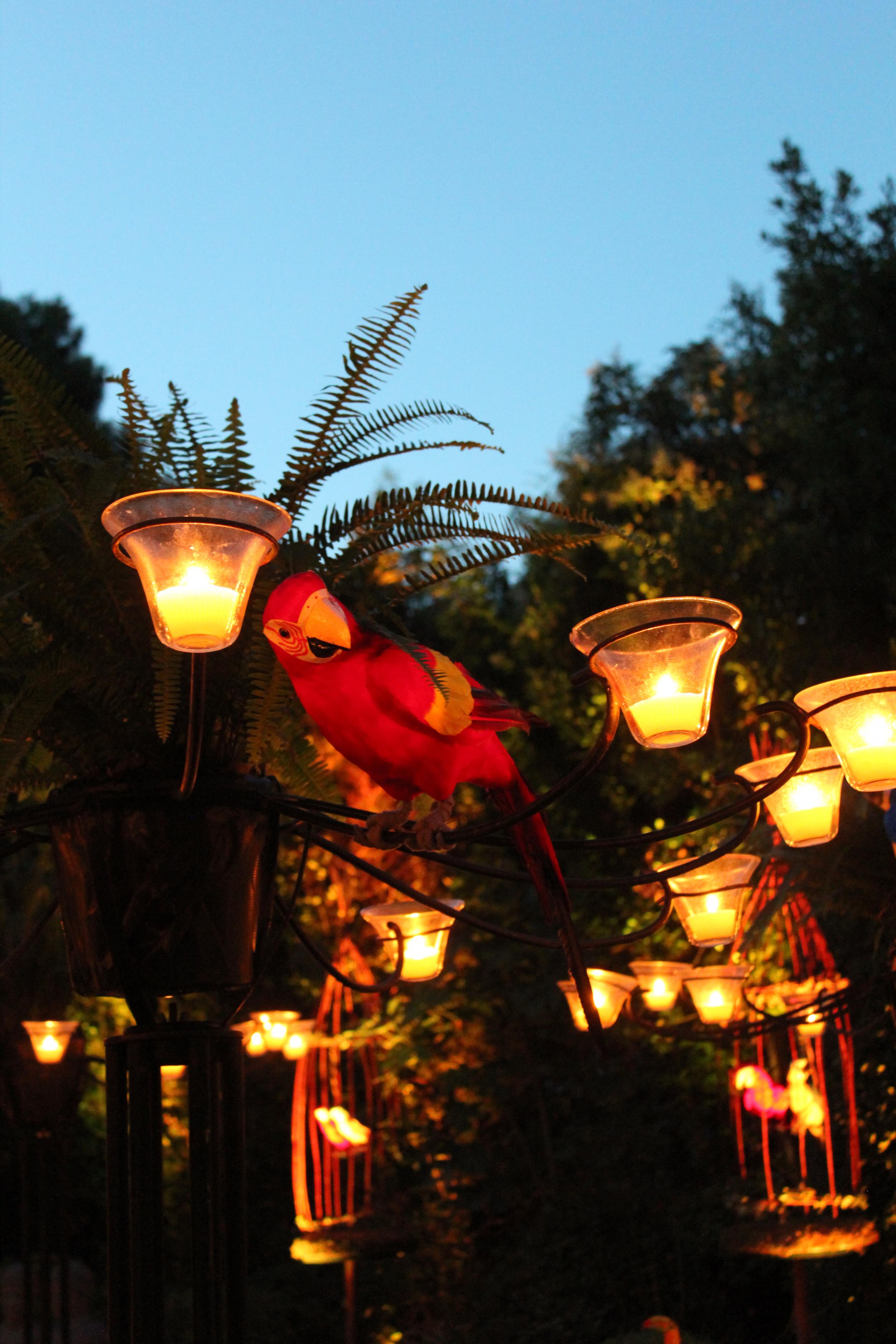Description: Iron with black finish & numerous glass containers that come filled with candle.
