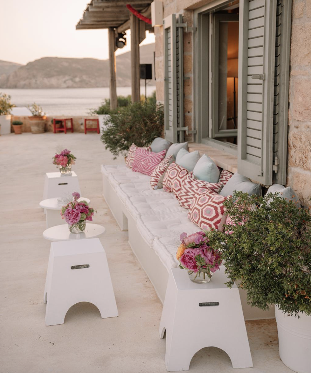 Description: Mix of pink patterned decorative Ikat pillows with silk front side and beige cotton back side.