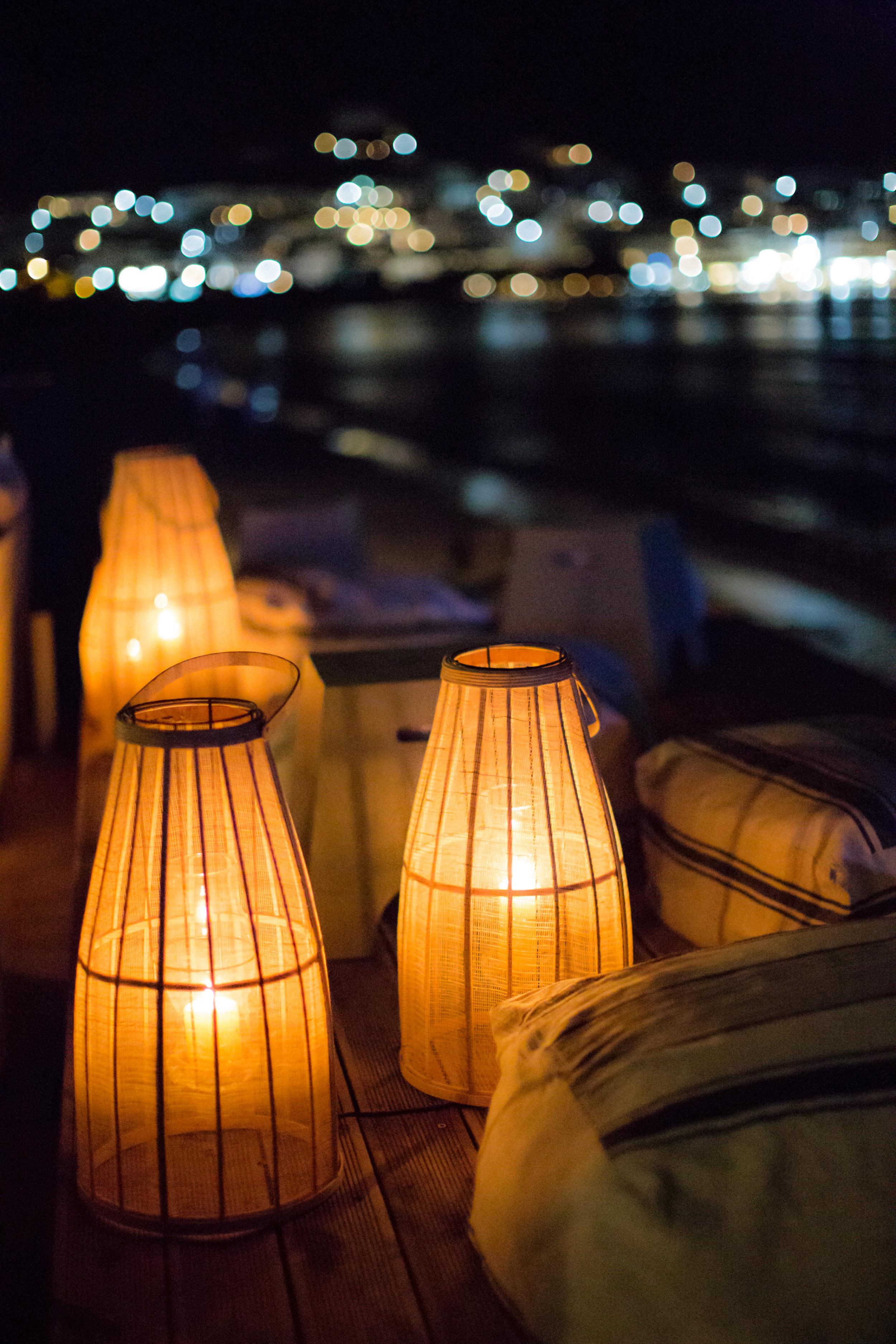 Description: Rattan lanterns with interior glass container & candle